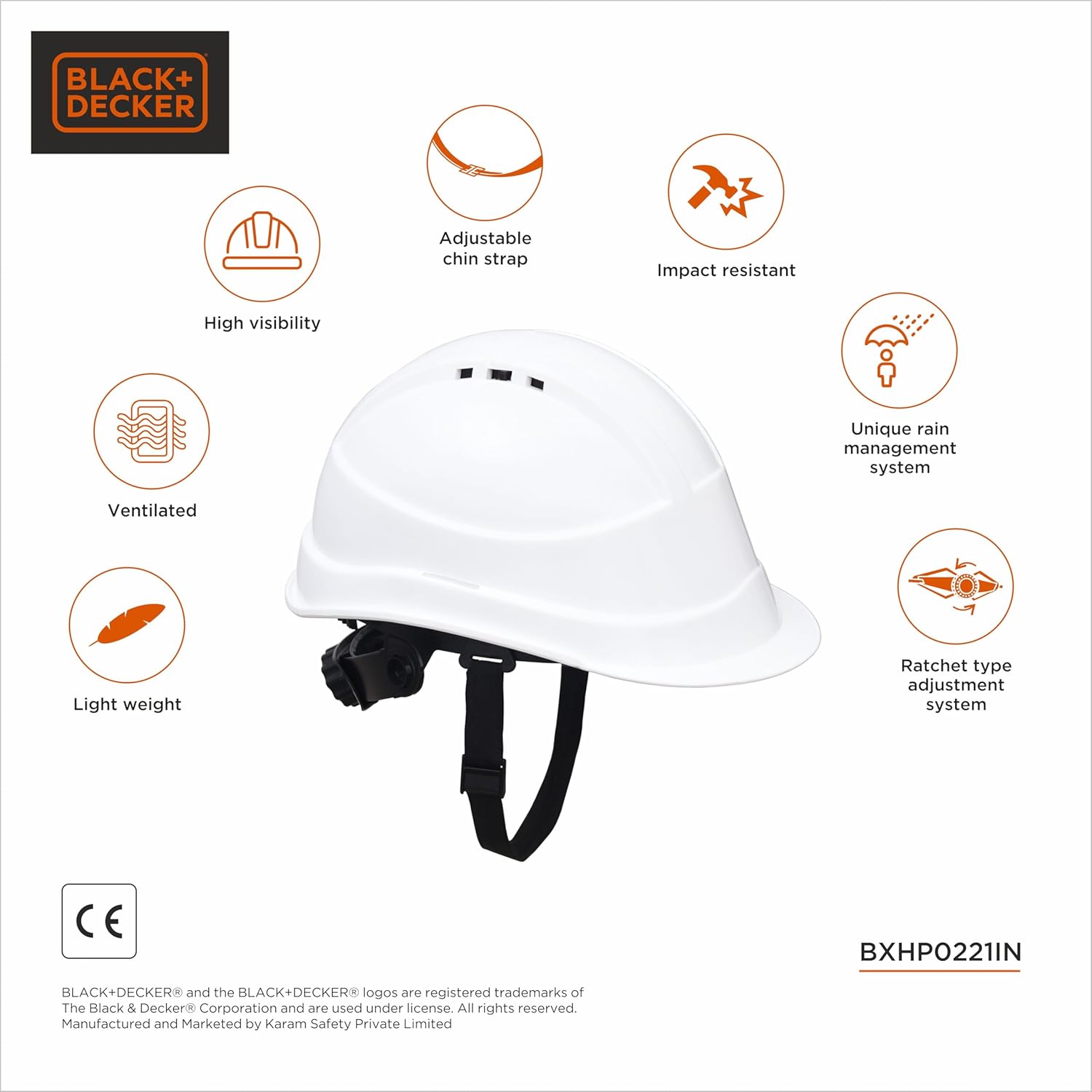 The BLACK+DECKER BXHP0221IN-W Industrial Safety Helmet offers reliable head protection for professionals working in construction, industrial, and worksite environments. Built with high-quality, impact-resistant material, this helmet ensures safety without compromising comfort.